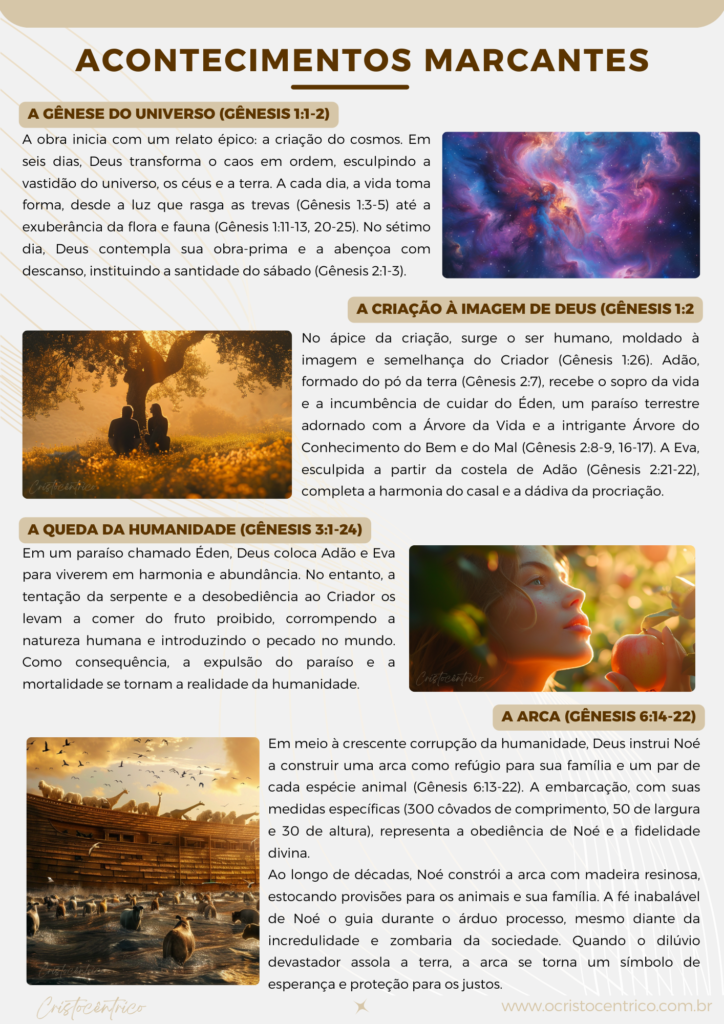 Apresentaremos os acontecimentos mais marcantes dos 66 livros da Bíblia. Cada evento significativo é detalhado para oferecer uma compreensão aprofundada de como essas histórias moldaram a narrativa e o significado das Escrituras